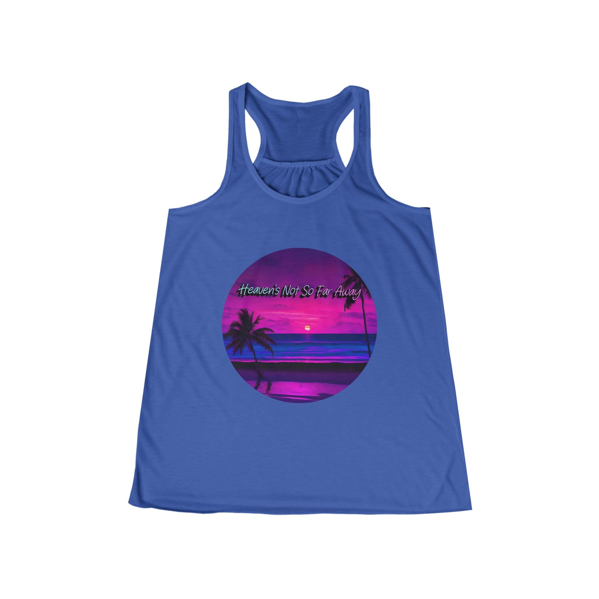 Ministry Fashion Presents "Heaven's Not So Far Away" Flowy Racerback Tank Top. The lightweight fabric drapes beautifully, offering both comfort and a flattering fit. Ideal for warm weather, this tank gives off a breezy, carefree vibe, making it perfect for casual gatherings or beach days. Whether you're heading to a backyard barbecue or lounging at home, this tank is versatile enough for any occasion. It's particularly relevant for summer holidays, music festivals, and vacations. Suitable for women who appreciate comfort without compromising on style, this piece is a must-have in any wardrobe!